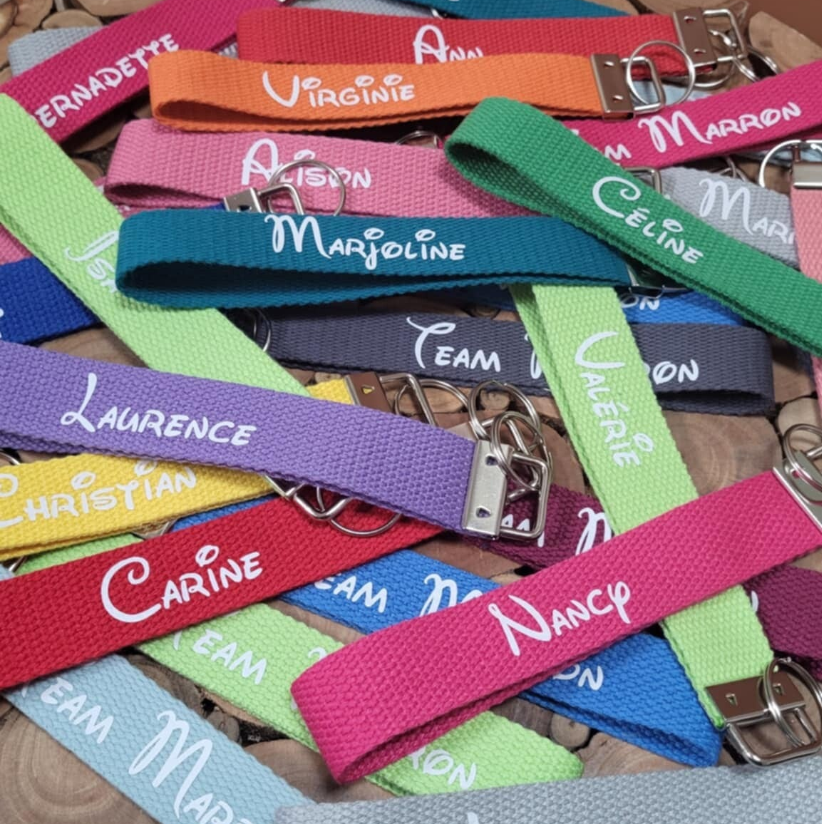 Choisissez votre texte, la couleur de la sangle et la police d’écriture : un porte-clés doux et pratique, parfait pour un cadeau ou pour se faire plaisir.