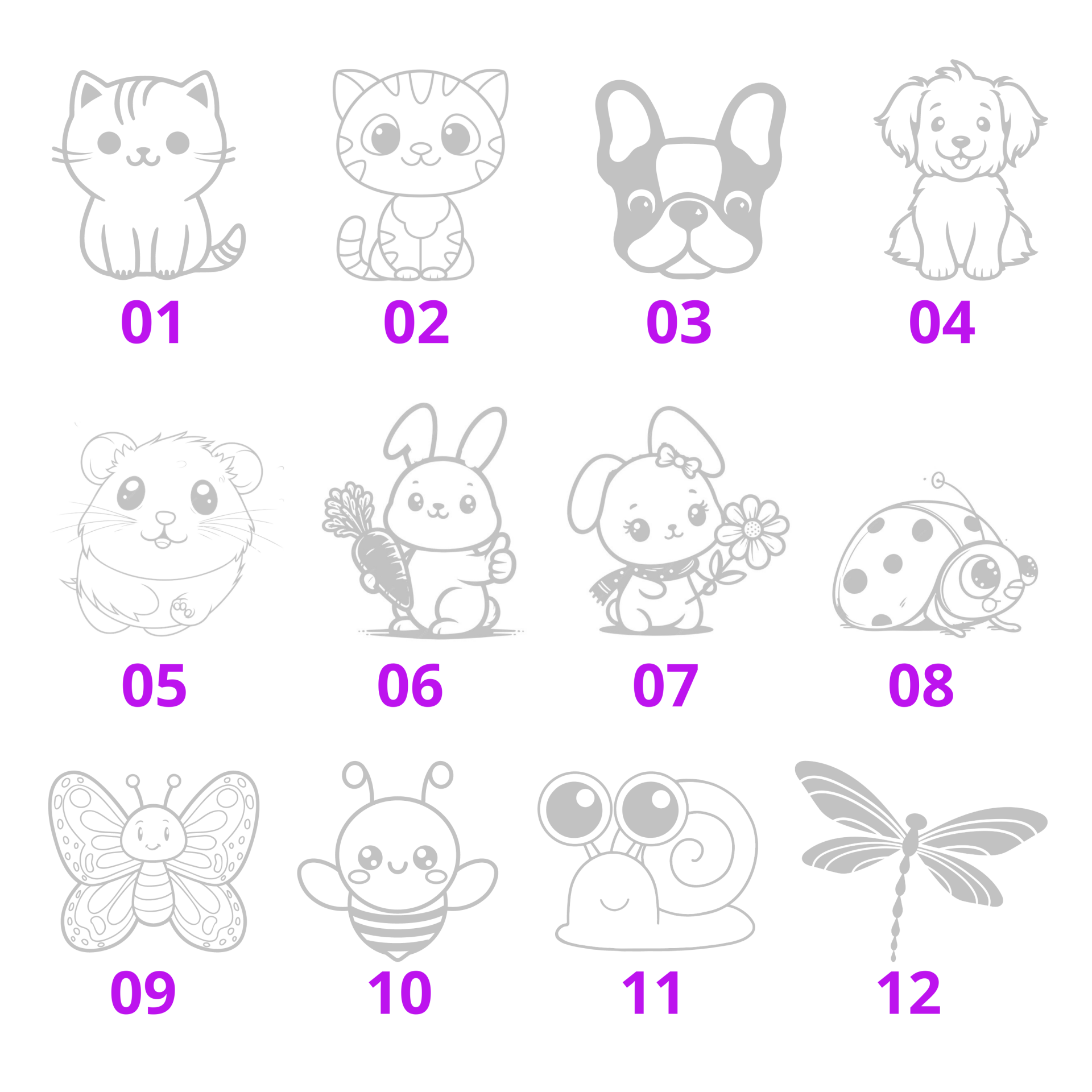 Avec plus de 𝟰𝟬 𝗱𝗲𝘀𝘀𝗶𝗻𝘀 disponibles, vous trouverez forcément celui qui plaira à votre enfant. Que ce soit une licorne pour marquer le passage en "1ère primaire" comme Léanore, ou un petit panda pour les fans de nature, tout est possible !